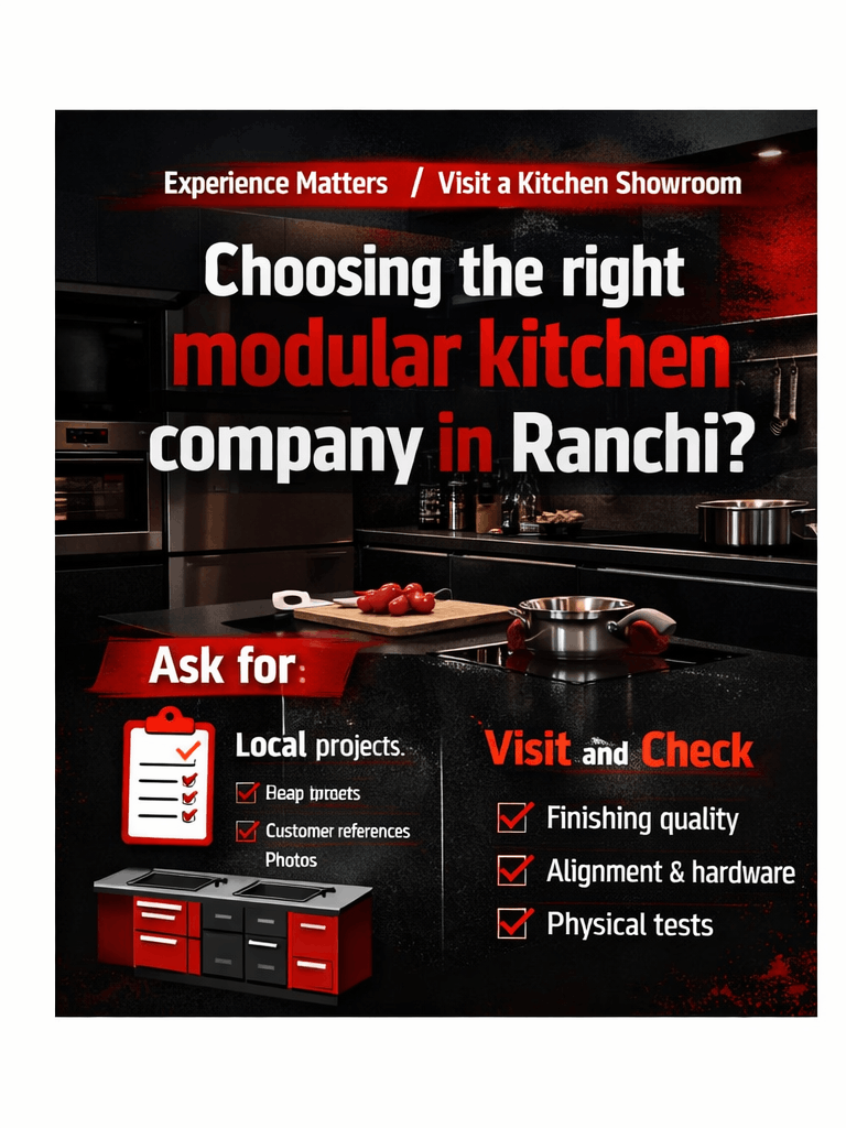 Selecting the right modular kitchen company in Ranchi requires smart comparison and clear understanding of materials, design, hardware, and service. Always visit the showroom, check quotations properly, and choose a company that offers transparency and professional support.