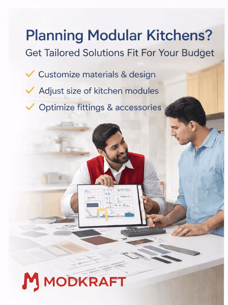 If your main concern is budget flexibility, customization, and long-term durability, MODKRAFT provides tailored modular kitchen solutions designed according to your financial plan.